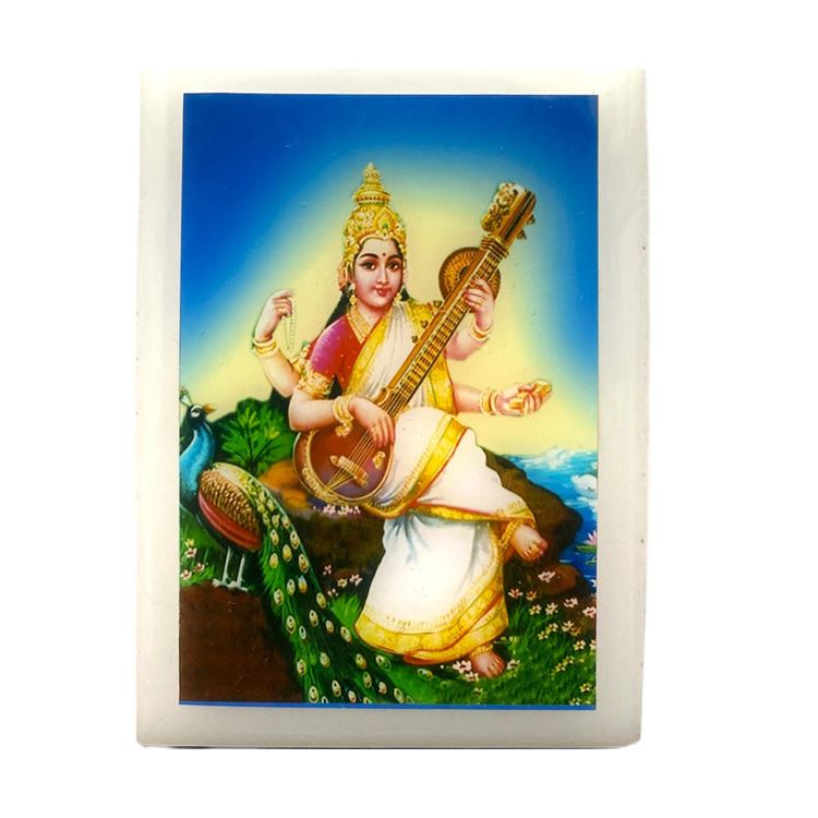 Acrylic Sticker Of Goddess Saraswati With Peacock