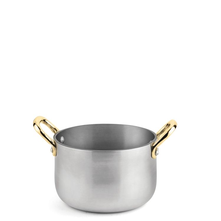 Brushed Aluminium Mini Casserole with 2 side brass handles.