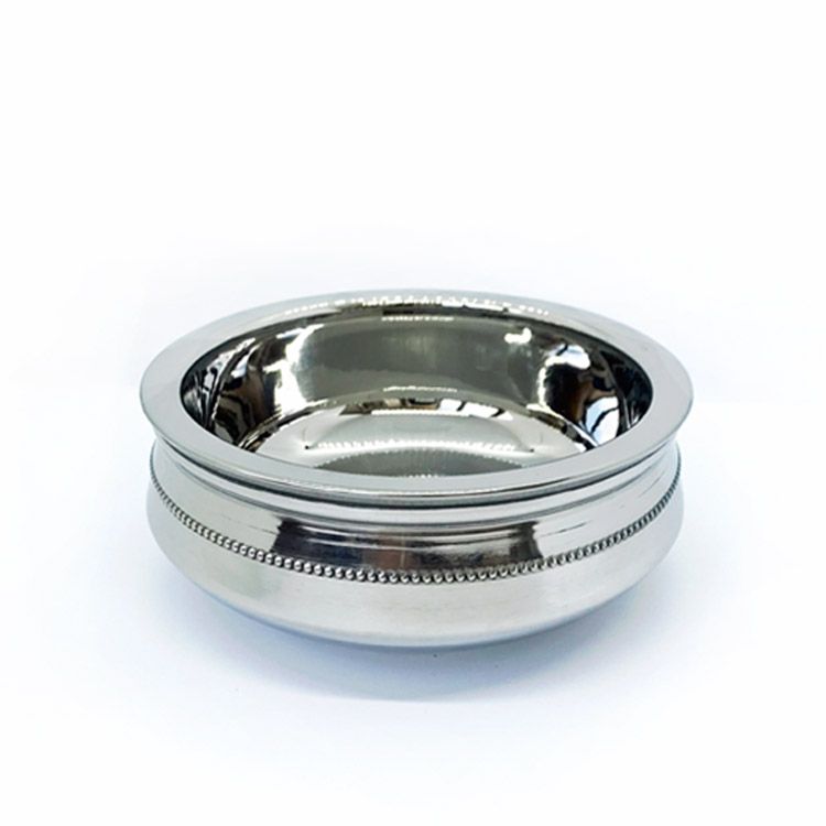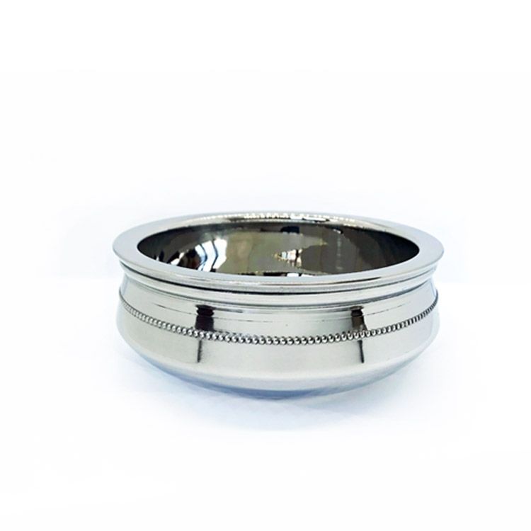 This Beaded Steel/Steel Handi is a traditional Indian style serving bowl used extensively in Indian restaurants for serving lentils, curries or any liquid based foods and is also great for rice based foods such as paulav and biryani.