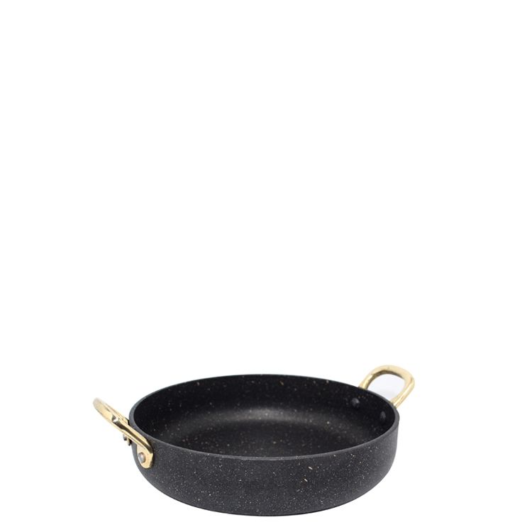 Black Stone Finish Mini Saute Pan With 2 Side Brass Handles.