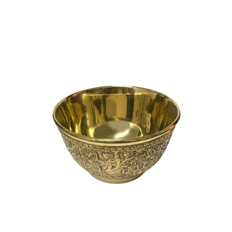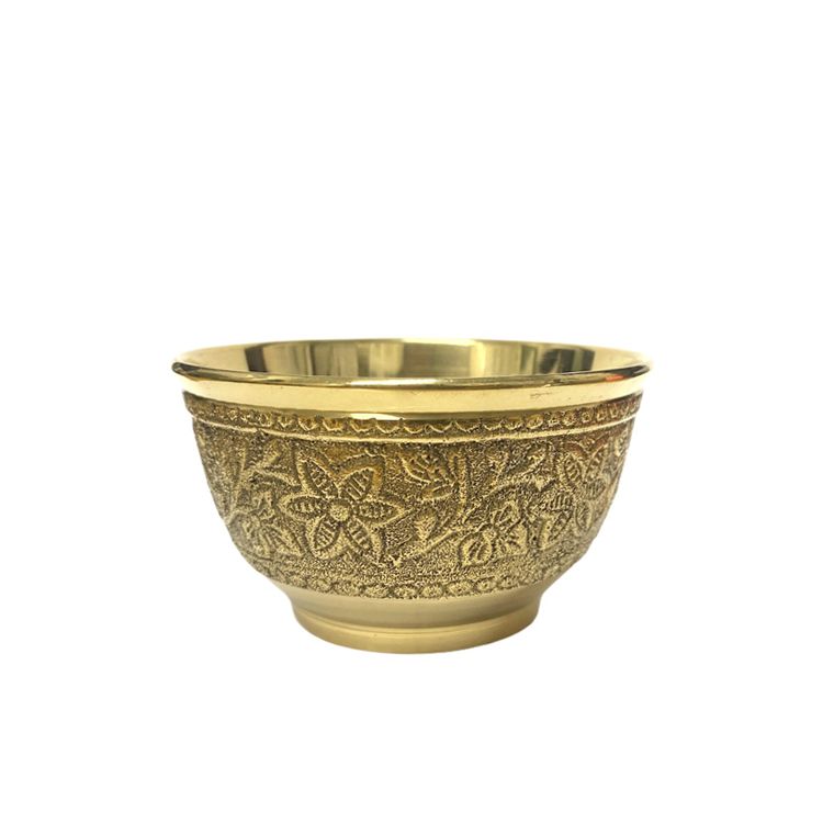 A Beautiful Brass Bowl With A Thick Floral Border
