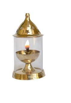 Made from Gold Plated Brass and glass chimney. Designed in Indian traditional look.