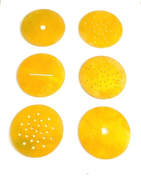 Damini Export Quality Brass Kitchen Press Bhujia Maker Sev Sancha Gathiya With Set of 6 Jali Designs Different Design Size No. 9 Heavy Quality