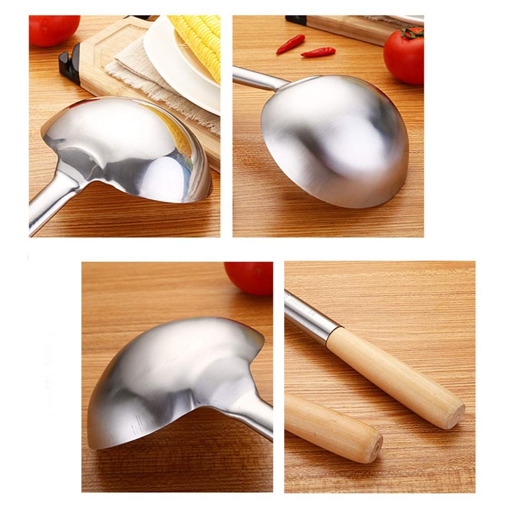 Made from high quality stainless steel This ladle has a deep, round bowl that is perfect for soups, noodles and cooking fried rice Easy-grip wood handle
