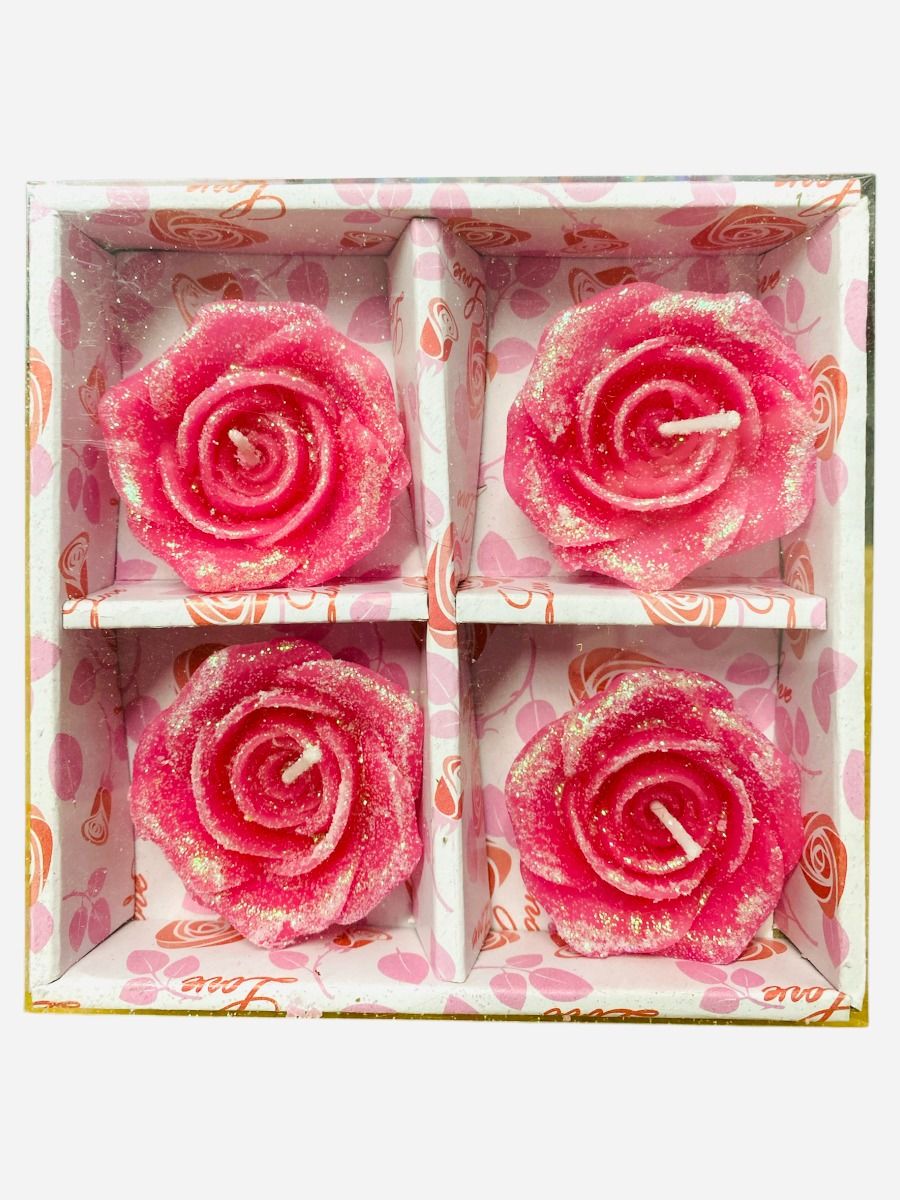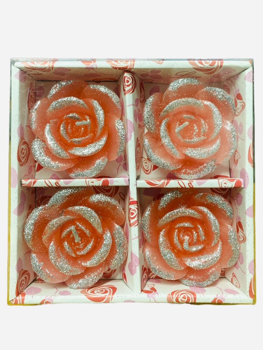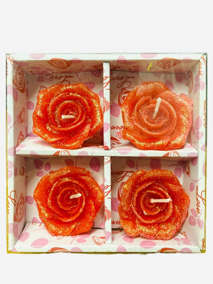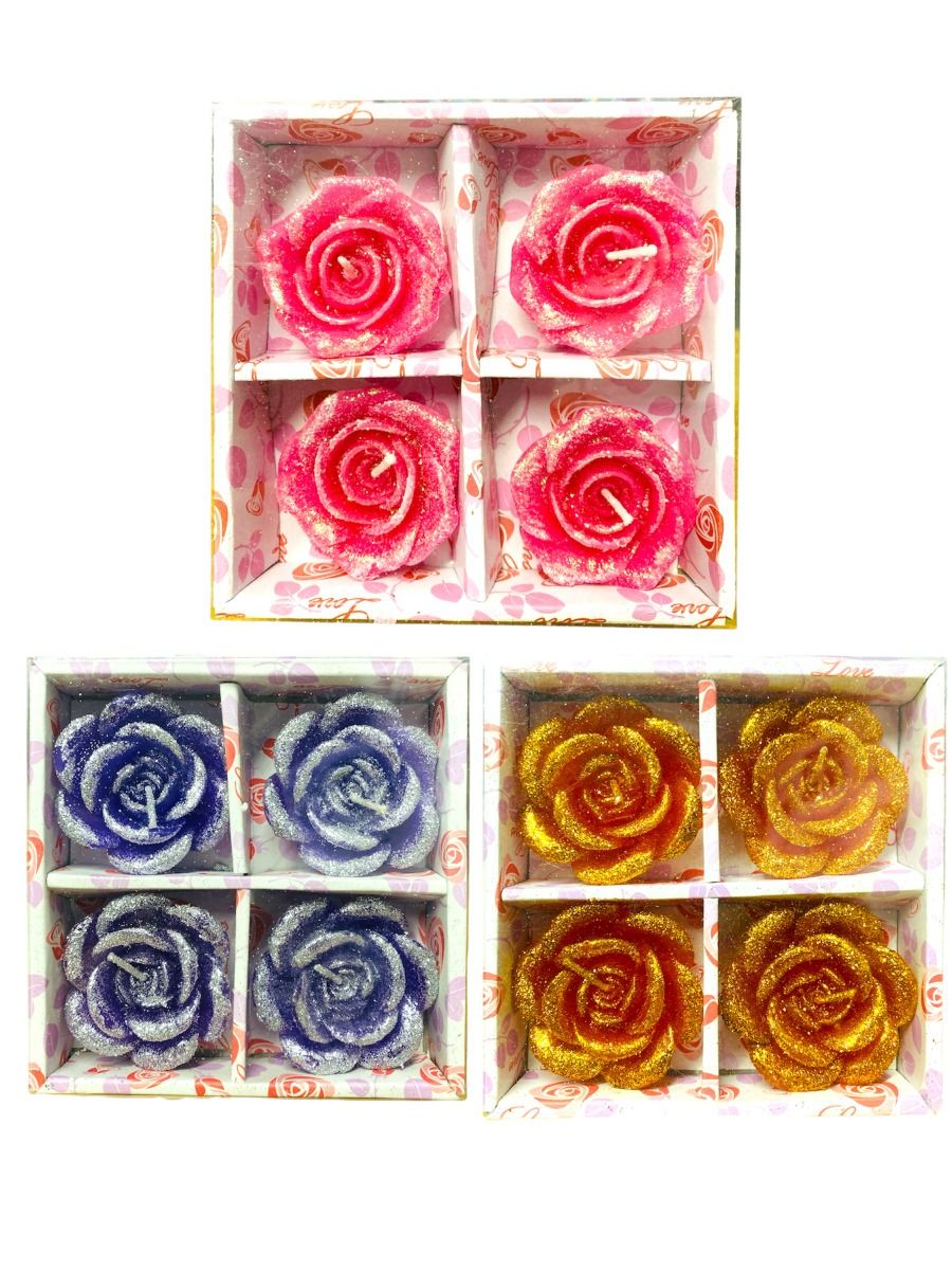 Coloured Rose Shaped Glittered Floating Candles 3 Packs x 4 Candles in each pack - Mixed packs
