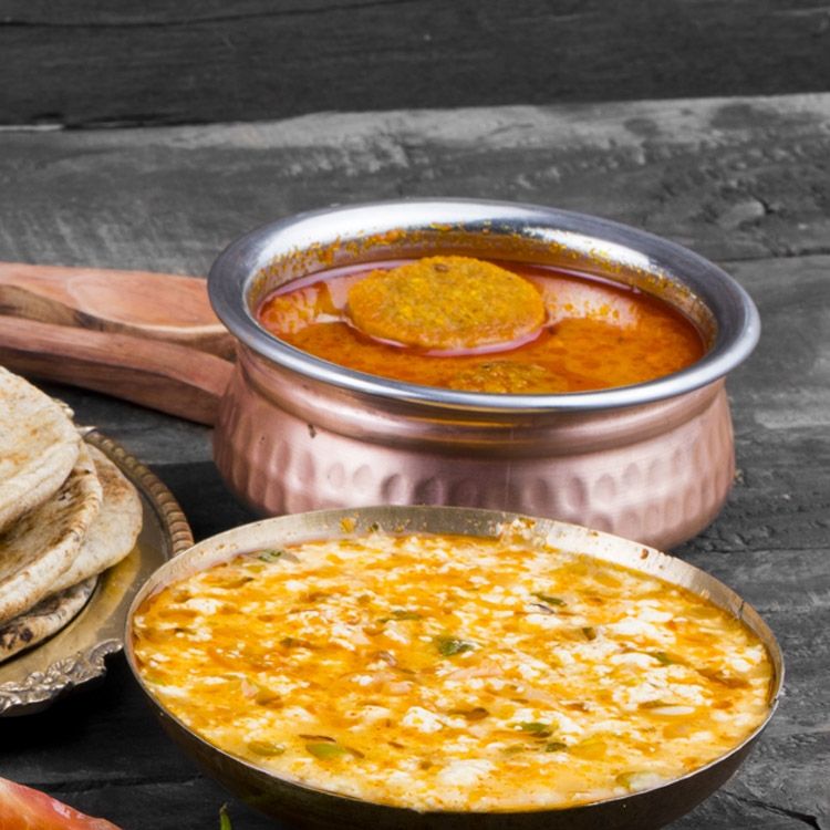 Crafted in copper-plated steel, this shapely serving bowl makes a stunning addition to the restuarant table. It's hammered exterior catches and reflects light, whilst the bowl's curved lip and steel interior provides rich visual contrast. The hand-hammered copper exterior gives this bowl one-of-a-kind texture and creates a authentic Indian look on any table. Food-safe steel interior lining.
