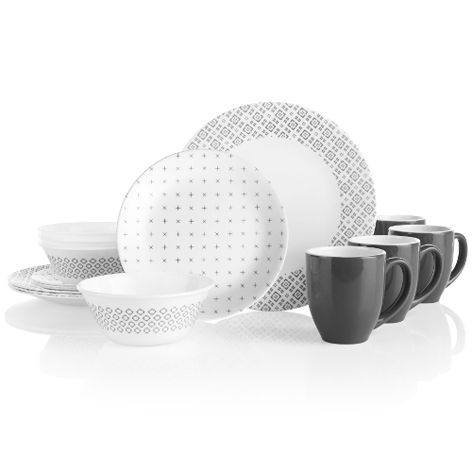 Corelle Farmstead Dark Grey 16pc Dinner Set