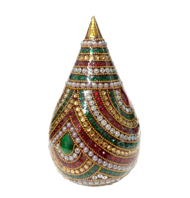 Decorated Beaded Coconut- Sliver, Gold, Red and Green Gems