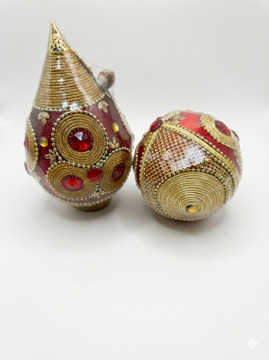 Decorated Coconut- Sliver, Gold, Red and Green Gems