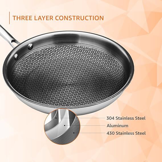 Advanced Honeycomb Design: The advanced honeycomb pattern on the frying pan ensures the surface is non-stick. Allowing you to cook food with ease.