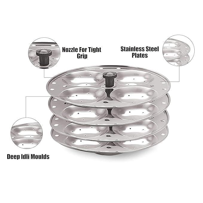 Stainless Steel Idli Stand - Regular Size - 4 Plates (16 Idli)