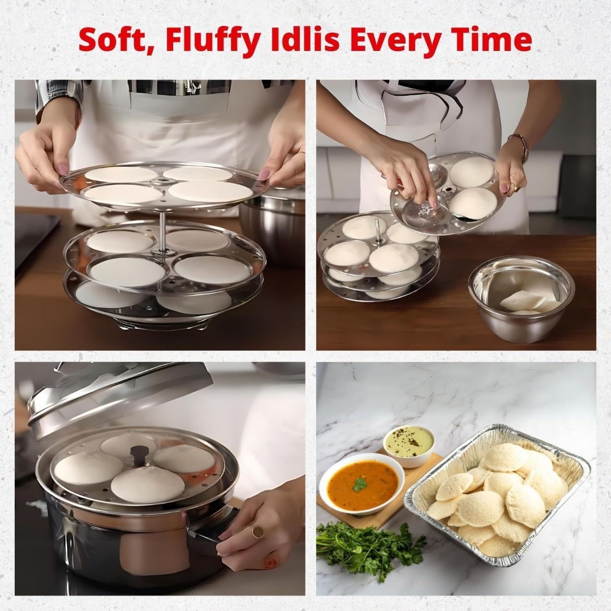 The idli plates are made of high quality stainless steel and the idli stand is an ideal cookware for any kitchen to cook soft and fluffy idlis.