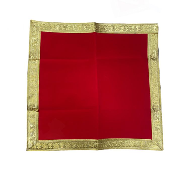 Large Red Velvet Chunri with a Thick Gold Border- Square - 18X18