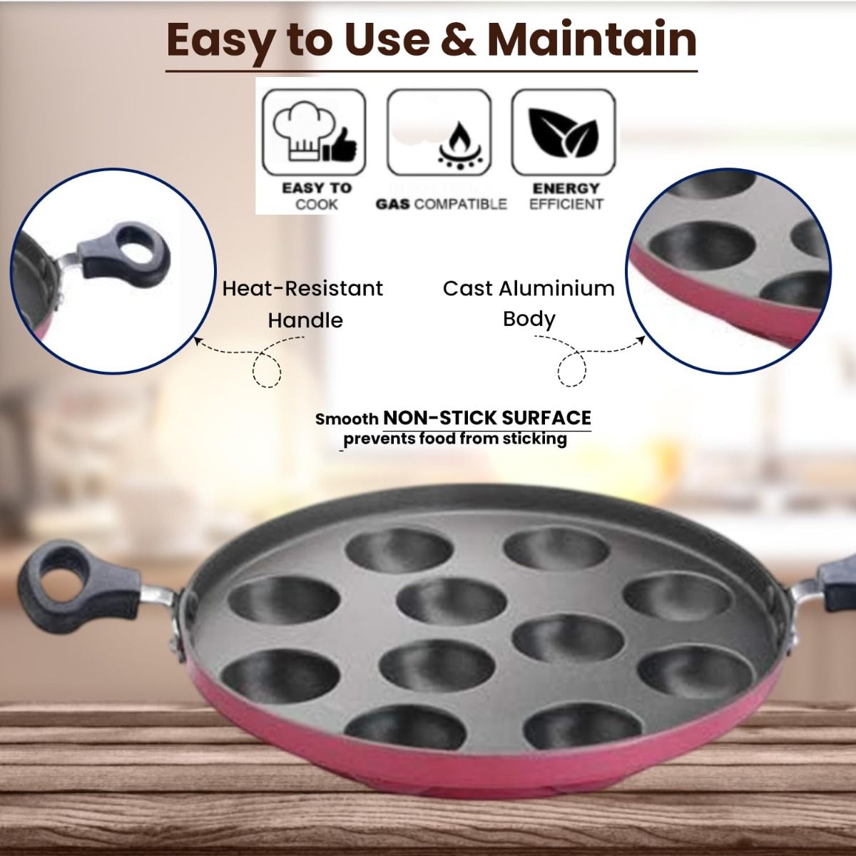 The durable non-stick coating allows you to prepare paniyaram quickly and efficiently without risk of sticking and breakage
