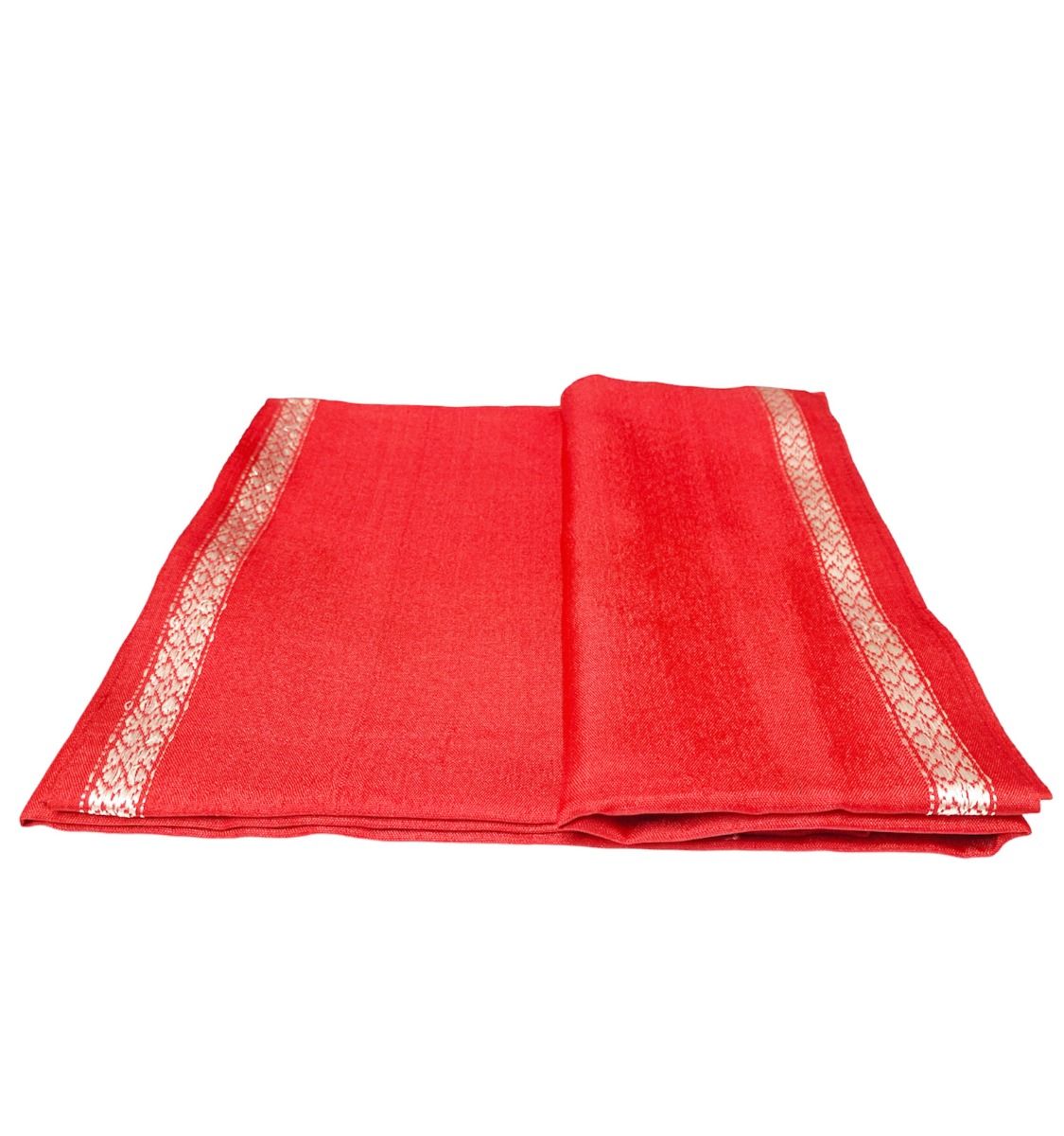 Pattu Cotton - Red with Patterned Silver Straight Border