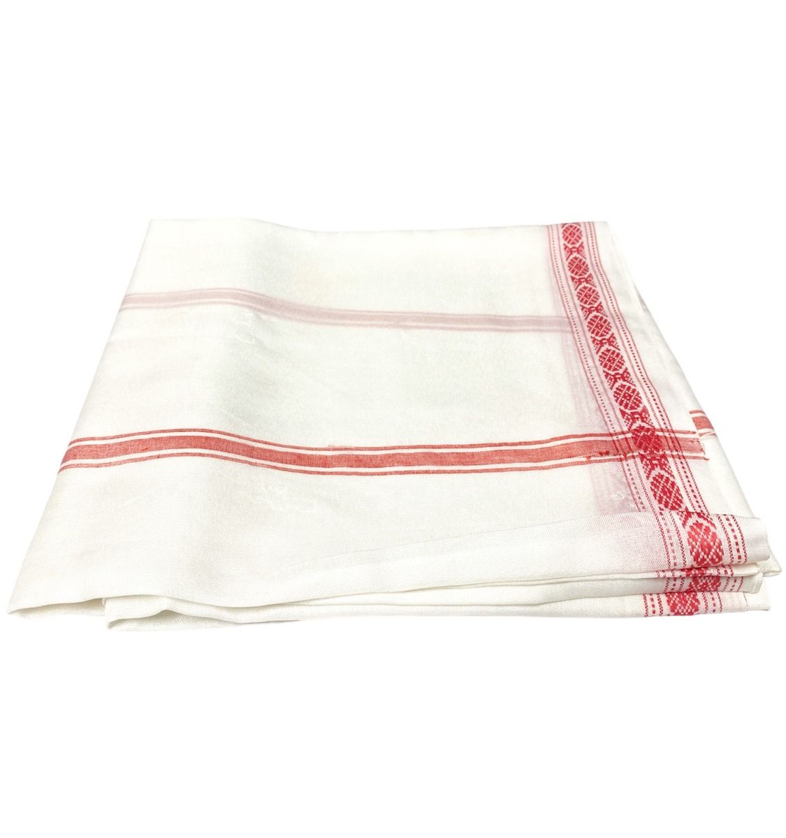 Pattu Cotton - White with Patterned Red Border