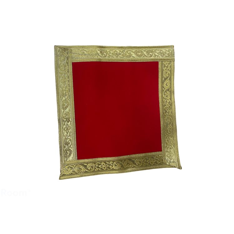 Red Velvet Chunri with a Thick Gold Border- Square - 10X10