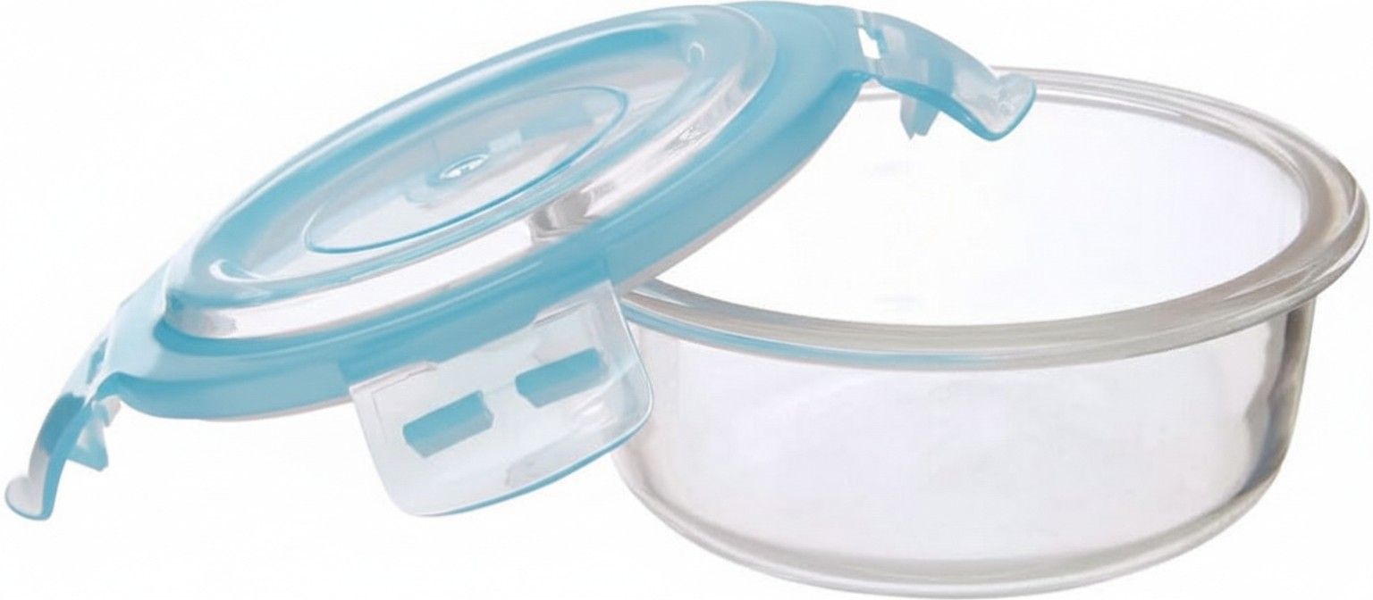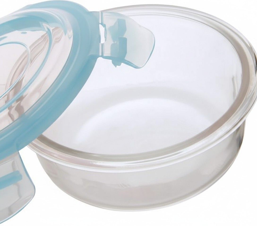 Round Glass Food Container With Blue BPA-Free Lid Airtight Food Storage Container