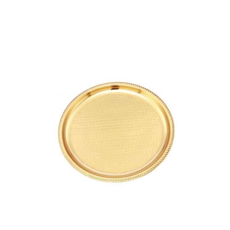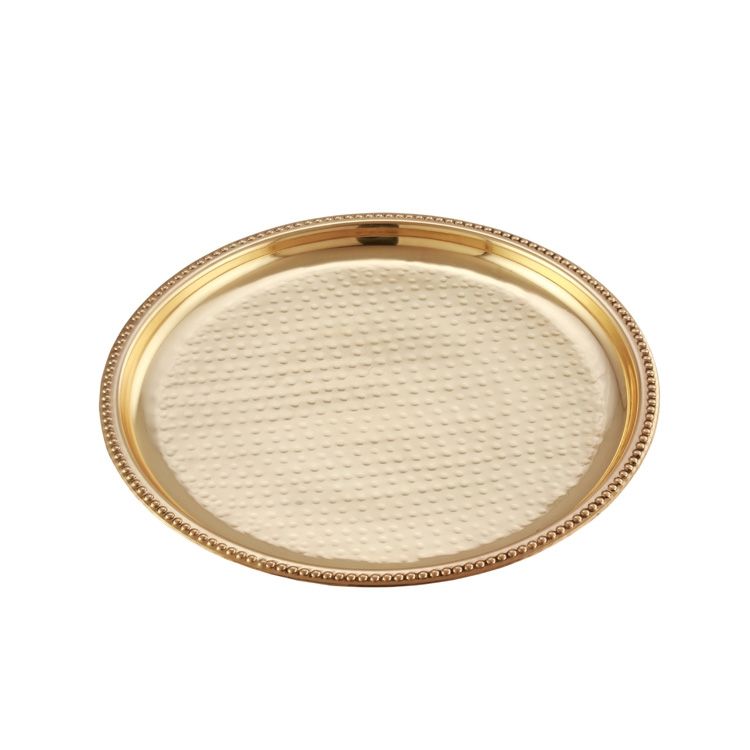 Round Stainless Steel Hammered Thali With Brass Plating - 28cm