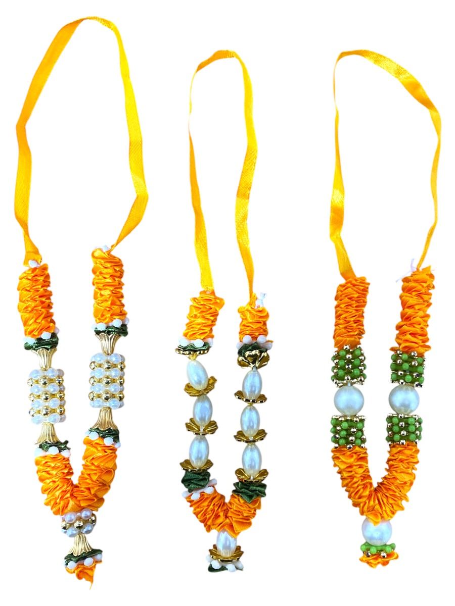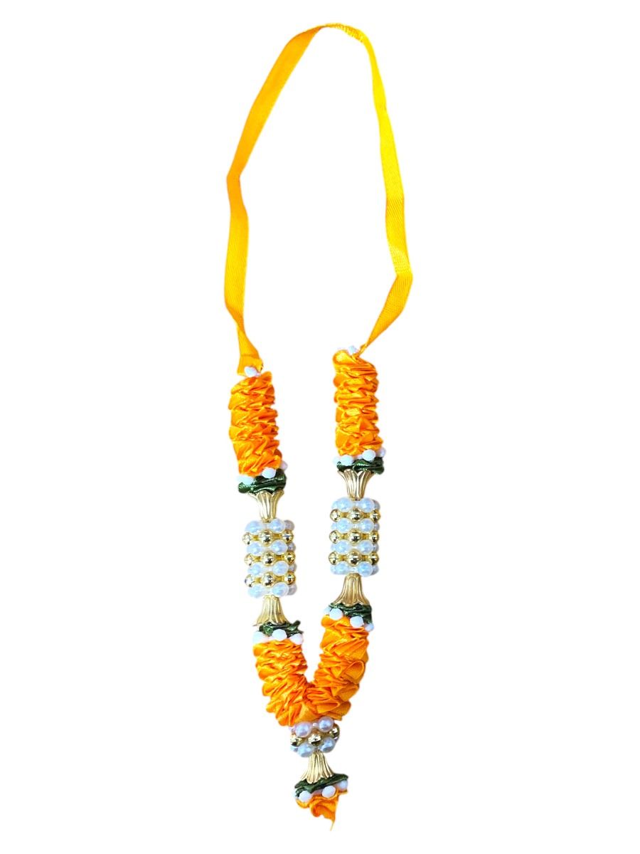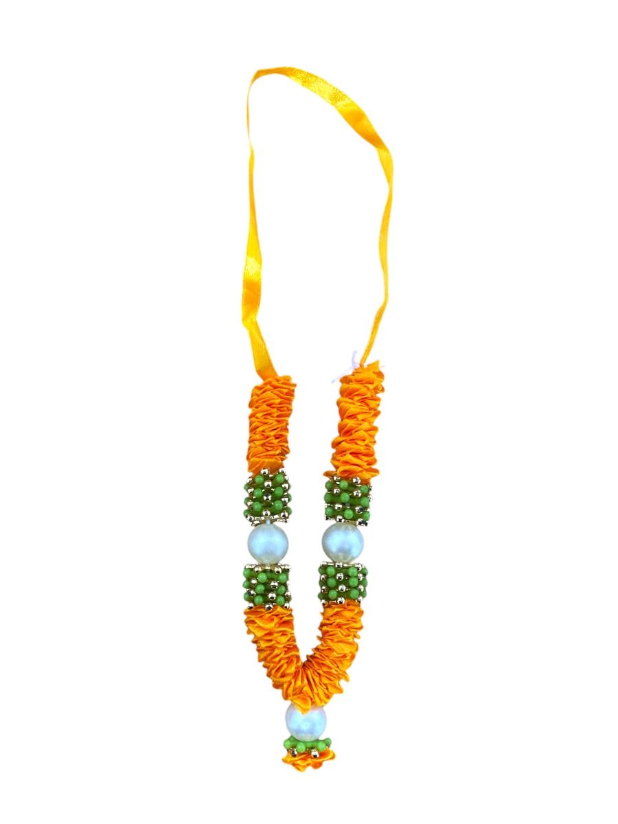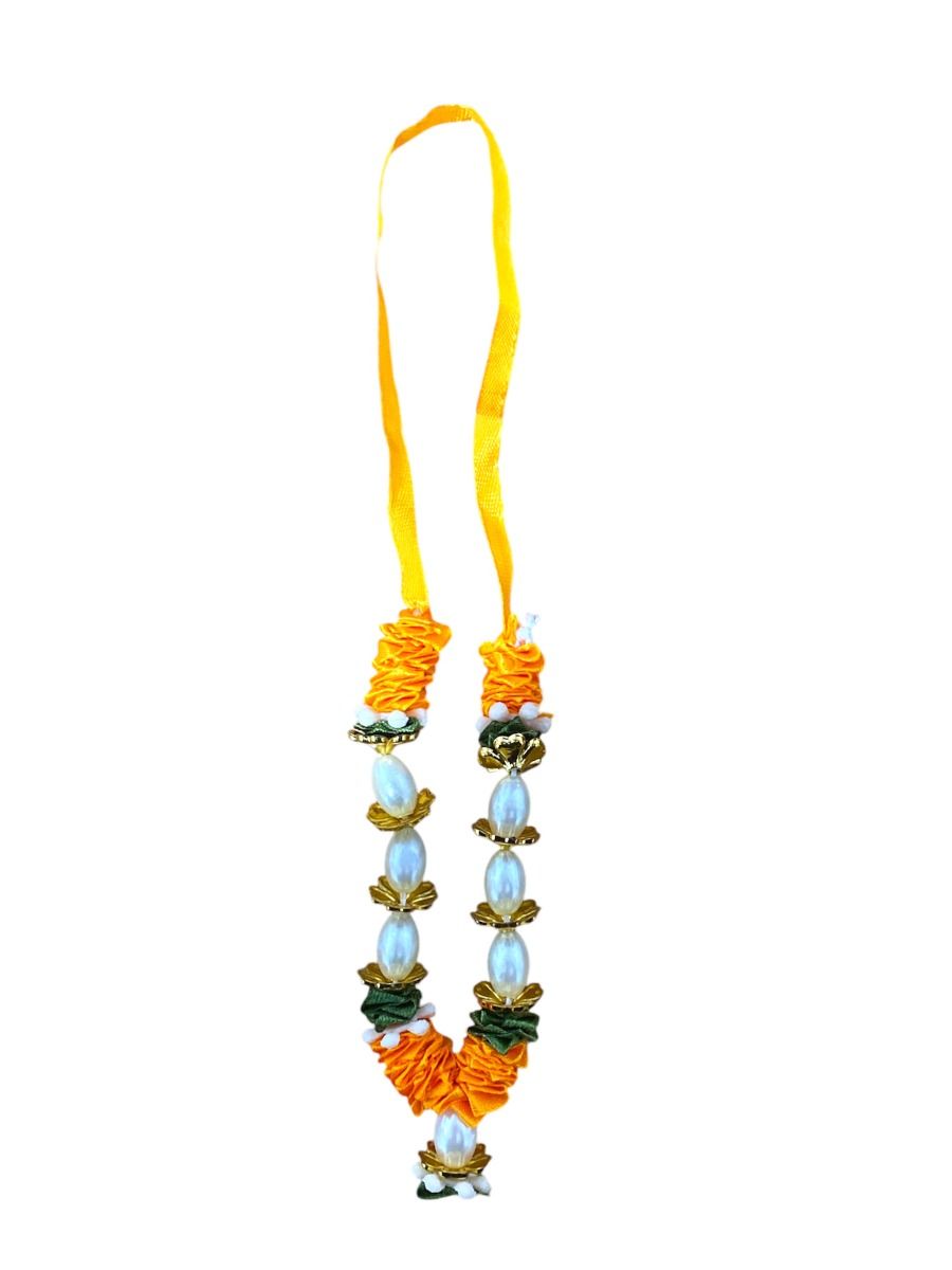 Satin Haar with Pearls - Small - Light Orange , Green, Gold and White x1