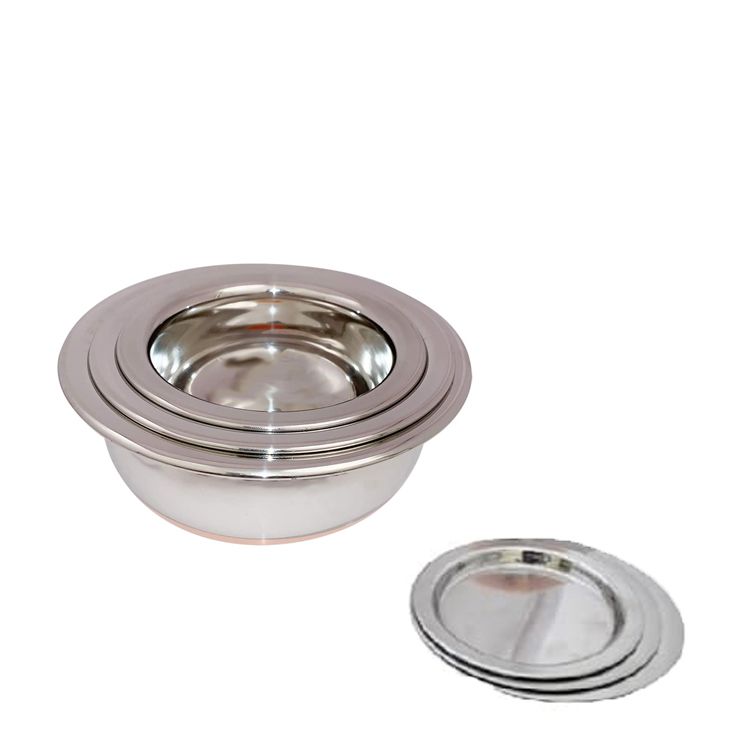 Set of 3 Stainless Steel Copper Bottom Handi With Lid.