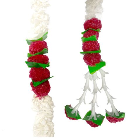 Single String Of White Jasmin With Red Artificial Flower Ladi - 42"