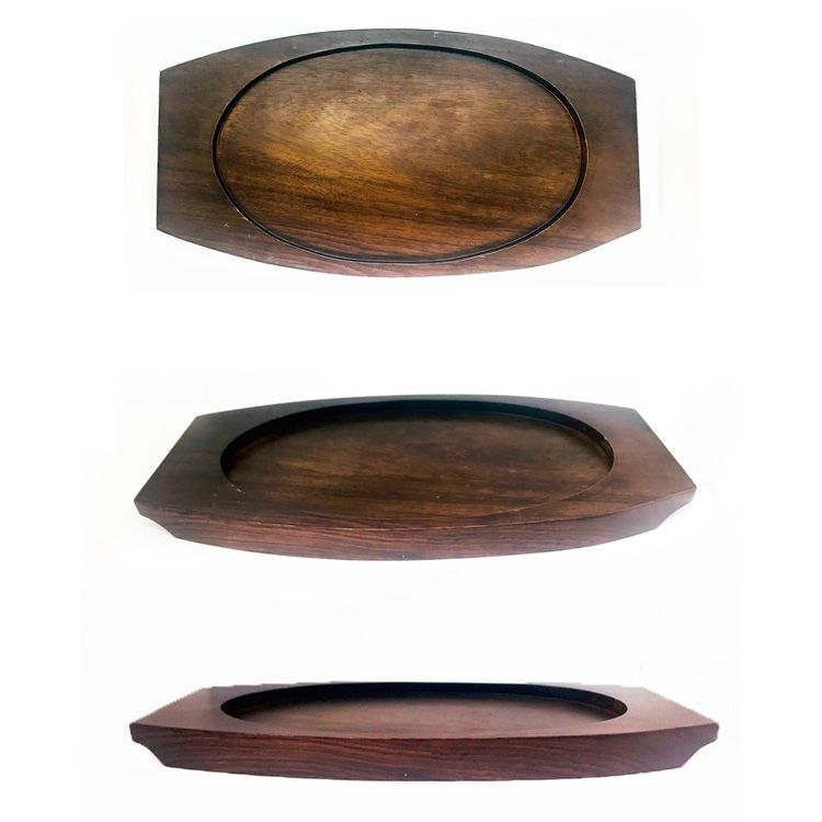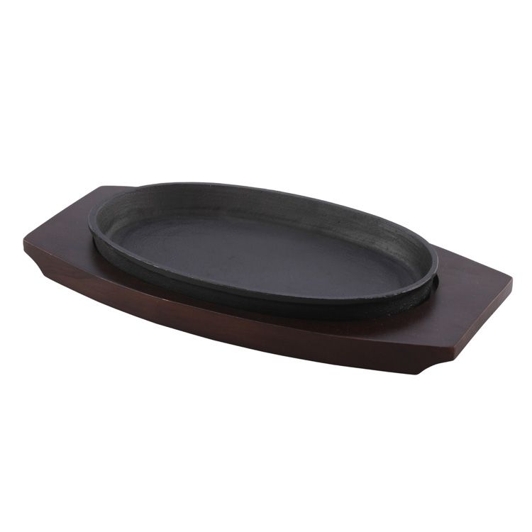 Sizzler - 11" Oval Iron Dish With Wooden Base