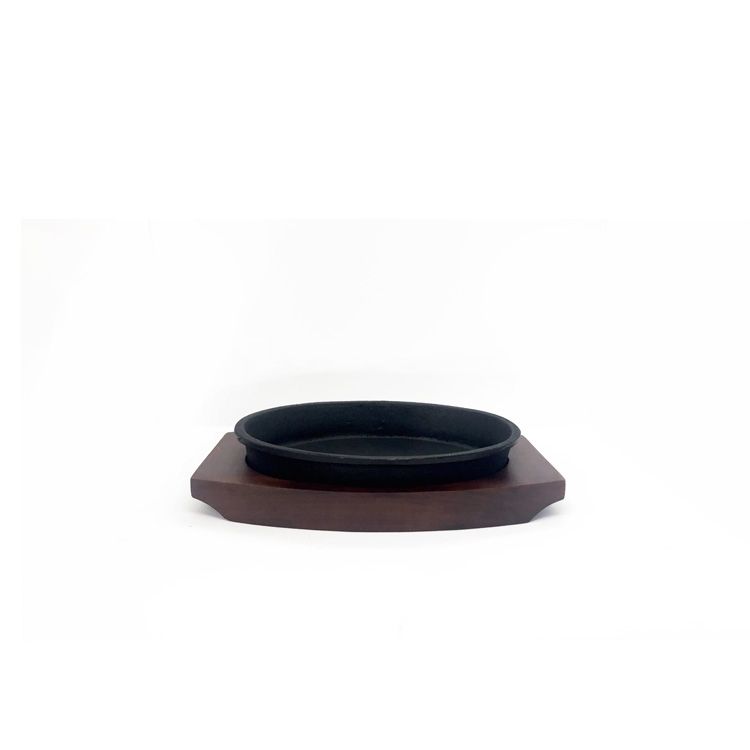 Sizzler - 7" Oval Iron Dish with Wooden Base