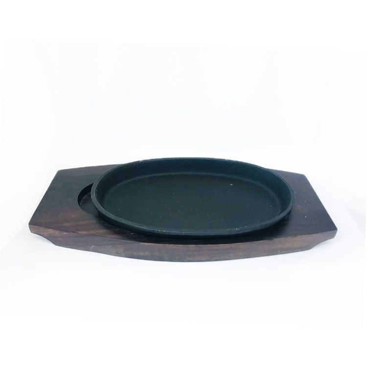 Sizzler - 9" Oval Iron Dish With Wooden Base And Sizzler Tongs