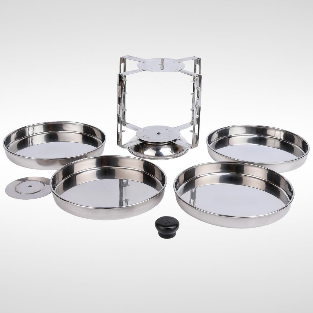 Multipurpose 4-Plate Set: Comes with 4 stainless steel plates and a strong stand, ideal for preparing dhokla, thatte idli, and regular idli. Each plate measures 16 cm in diameter and fits most standard pressure cookers