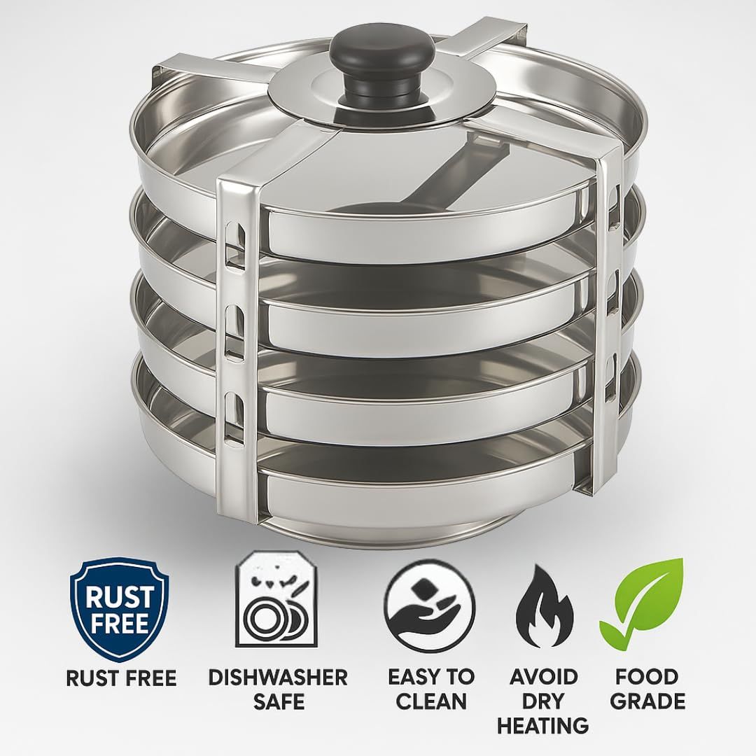 Even Heat Distribution: Crafted from stainless steel for even steaming and consistent cooking results. Ensures soft, fluffy idlis and perfectly steamed khaman dhokla every time