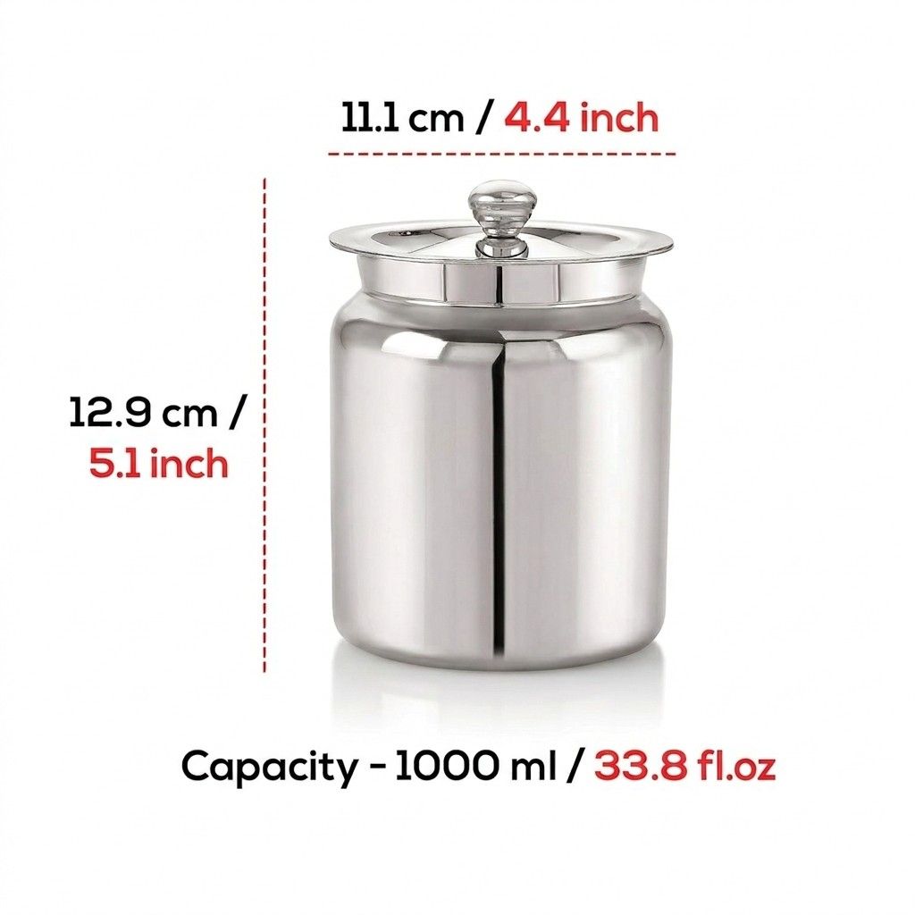 Our oil and ghee containers for kitchen come with an easy knob for convenience and its shiny steel ware adds an authentic and traditional look to your kitchen