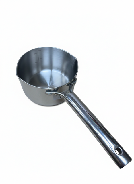 This milk pan is made from stainless steel and has an encapsulated sandwich base for even heat distribution. The handle is riveted with a bekalite covering with prevents the handle from heating and allowing easy handling.