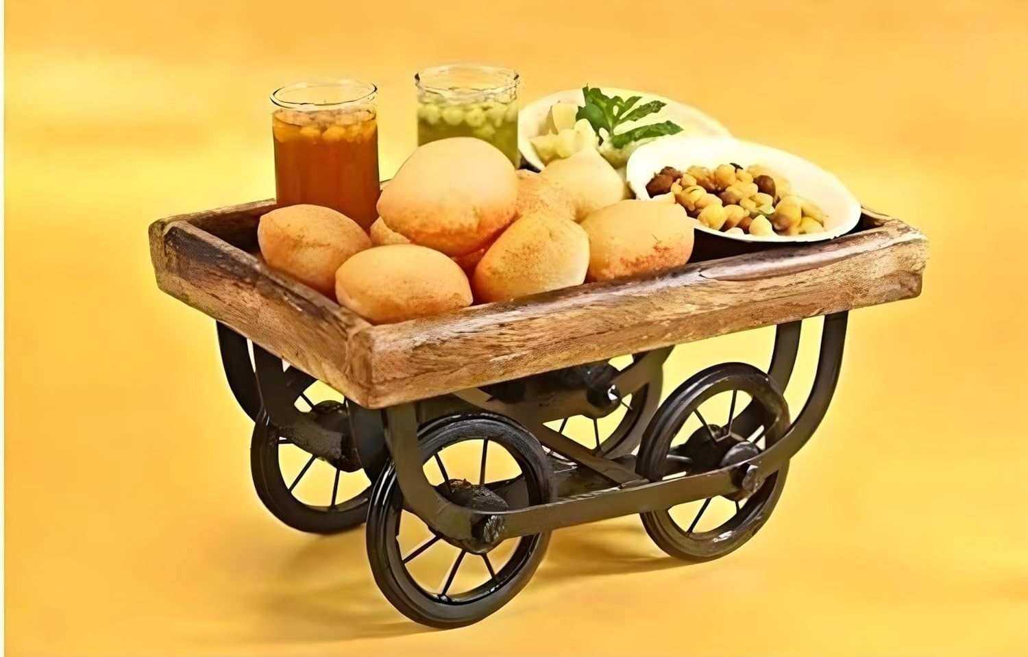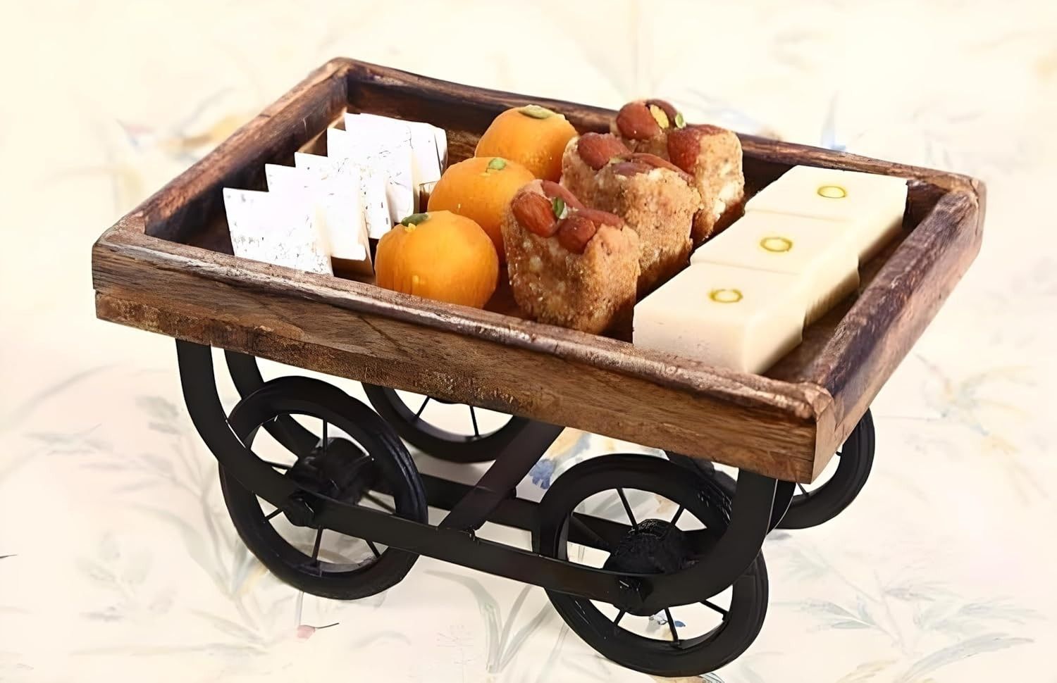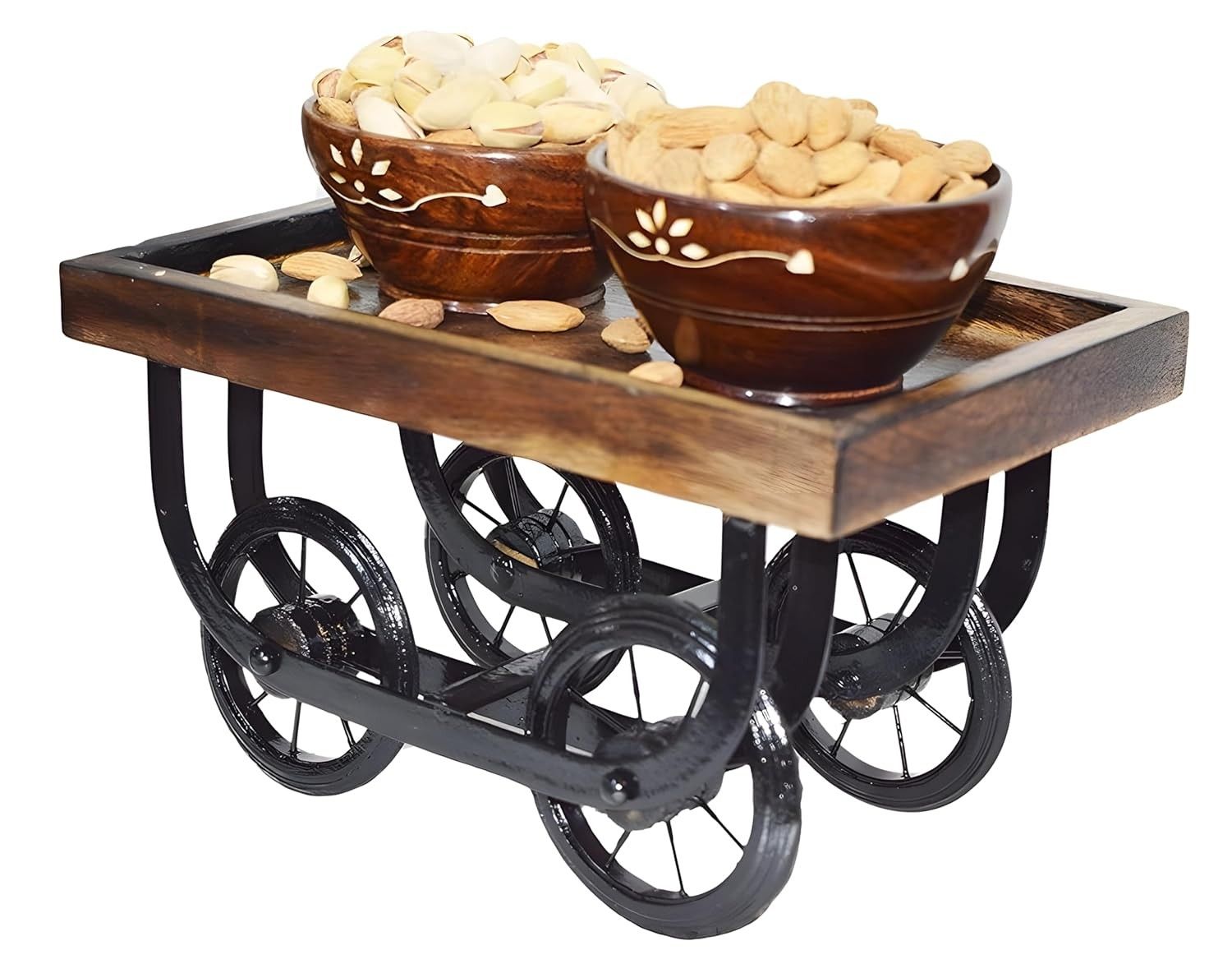 Crafted from high-quality wood, this thela trolley tray is designed for durability, ensuring long-lasting use and timeless appeal. Perfect for serving snacks, drinks, and meals