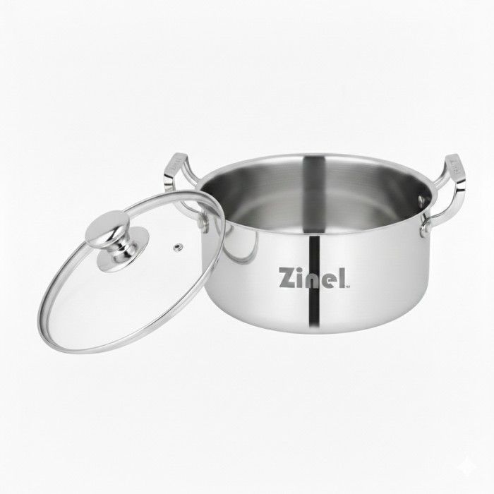 Zinel Stainless Steel Triply Casserole Pan with Glass Lid, 20cm - 3L