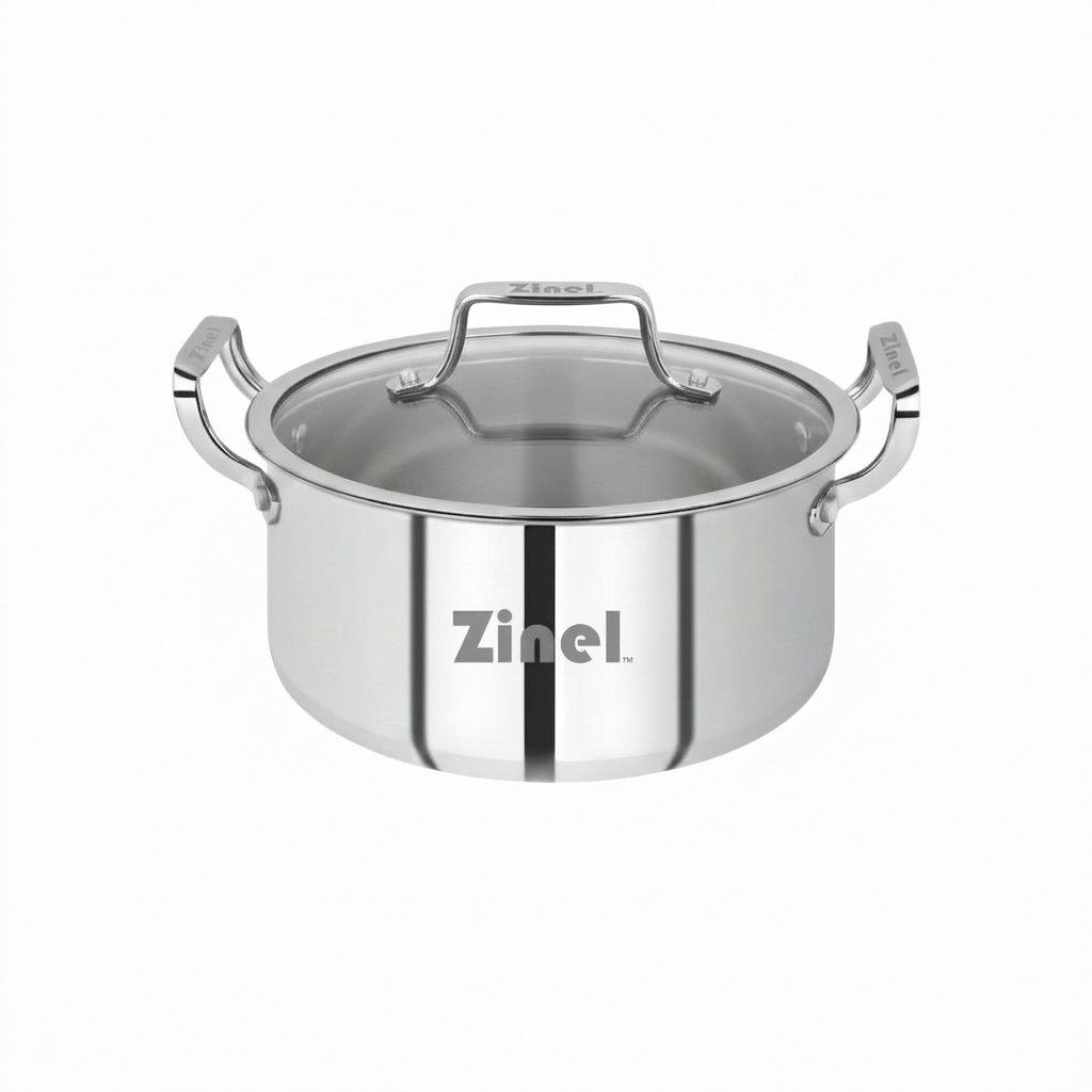 Zinel Tri-Ply stainless steel cookware is made of three layers of material that ensures even heat distribution, reduces cooking time and less chances of burning; resulting in great cooking results.